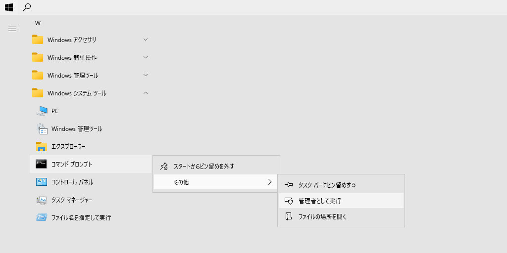自分のパソコンでpip installを実行する場合は、コマンドプロンプトを「管理者として実行」して起動します。